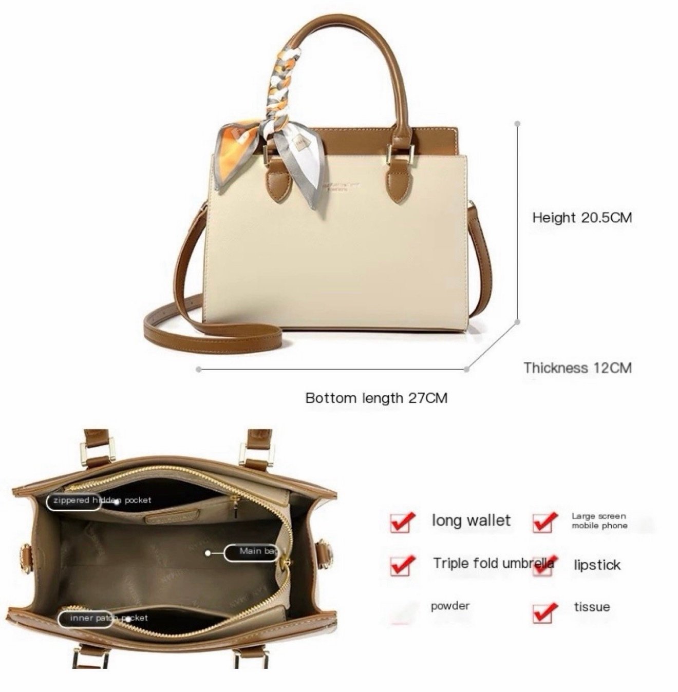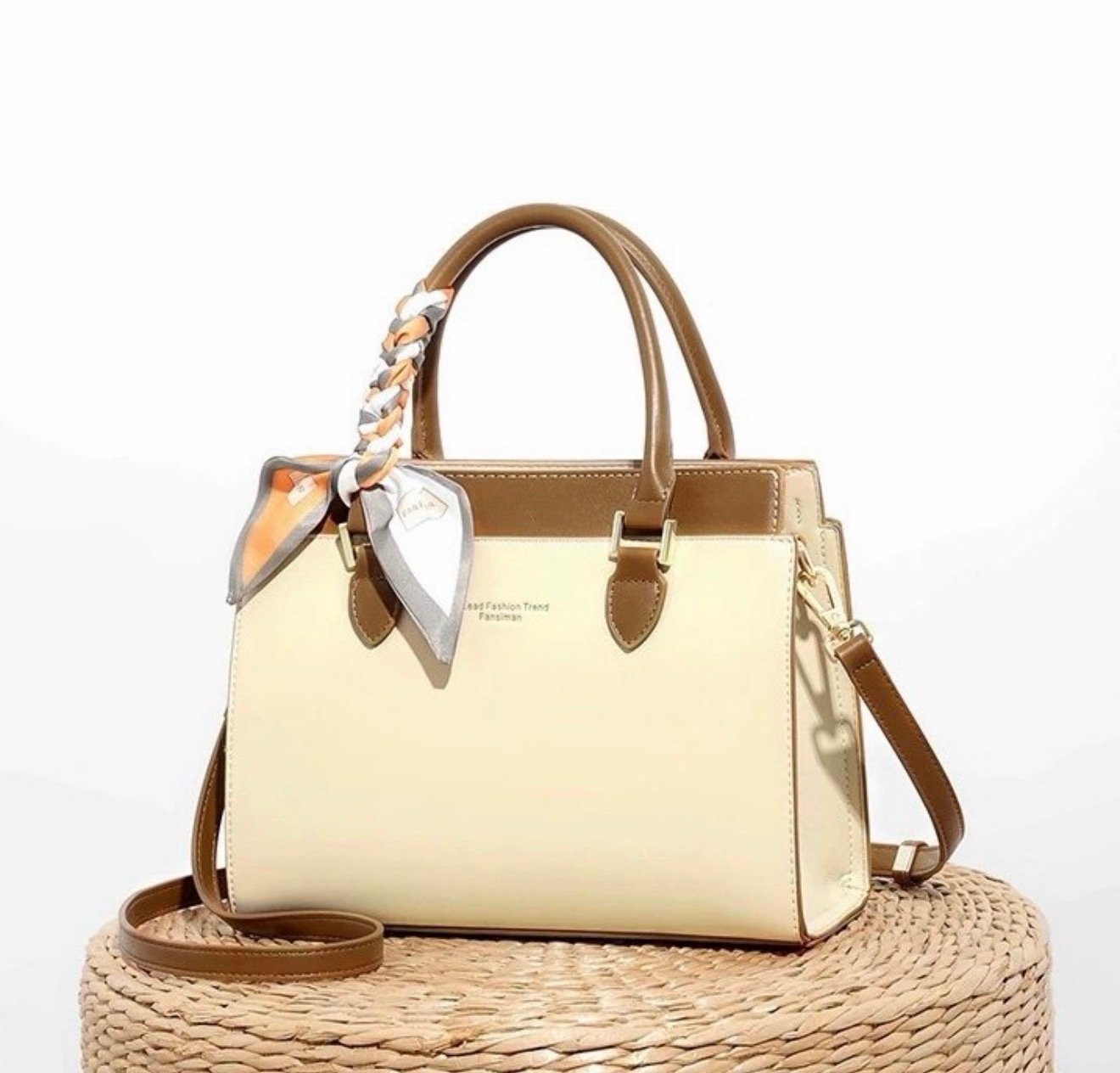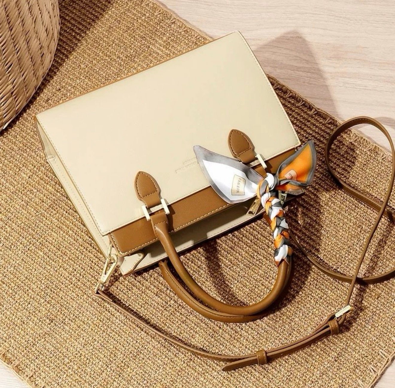 Add a touch of class to your everyday look with this elegant two-tone handbag. Crafted from premium PU leather, this stylish tote comes with a decorative scarf, spacious compartments, and a detachable shoulder strap — perfect for work, travel, and daily use.